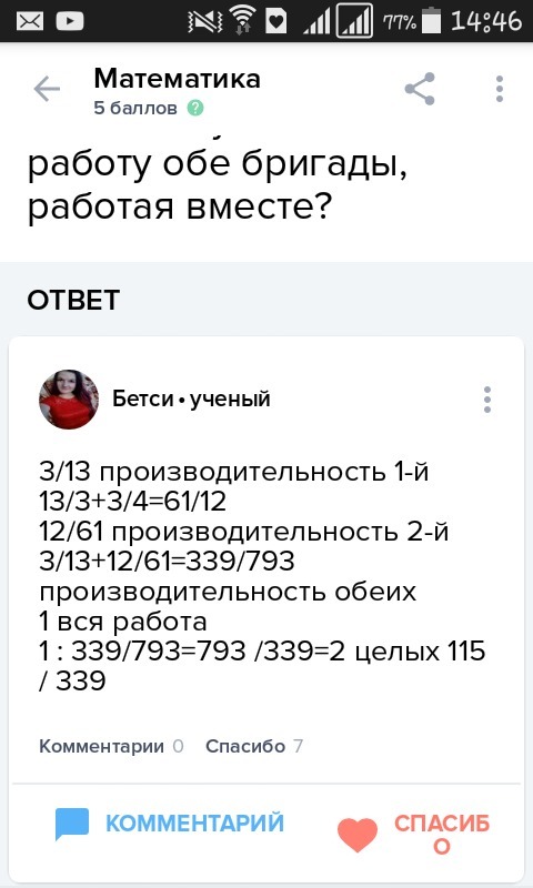 Первая бригада может выполнить работу за13/3 а вторая на 3/4 медленнее за сколько часов могут выполить работу обе бригады работая вместе