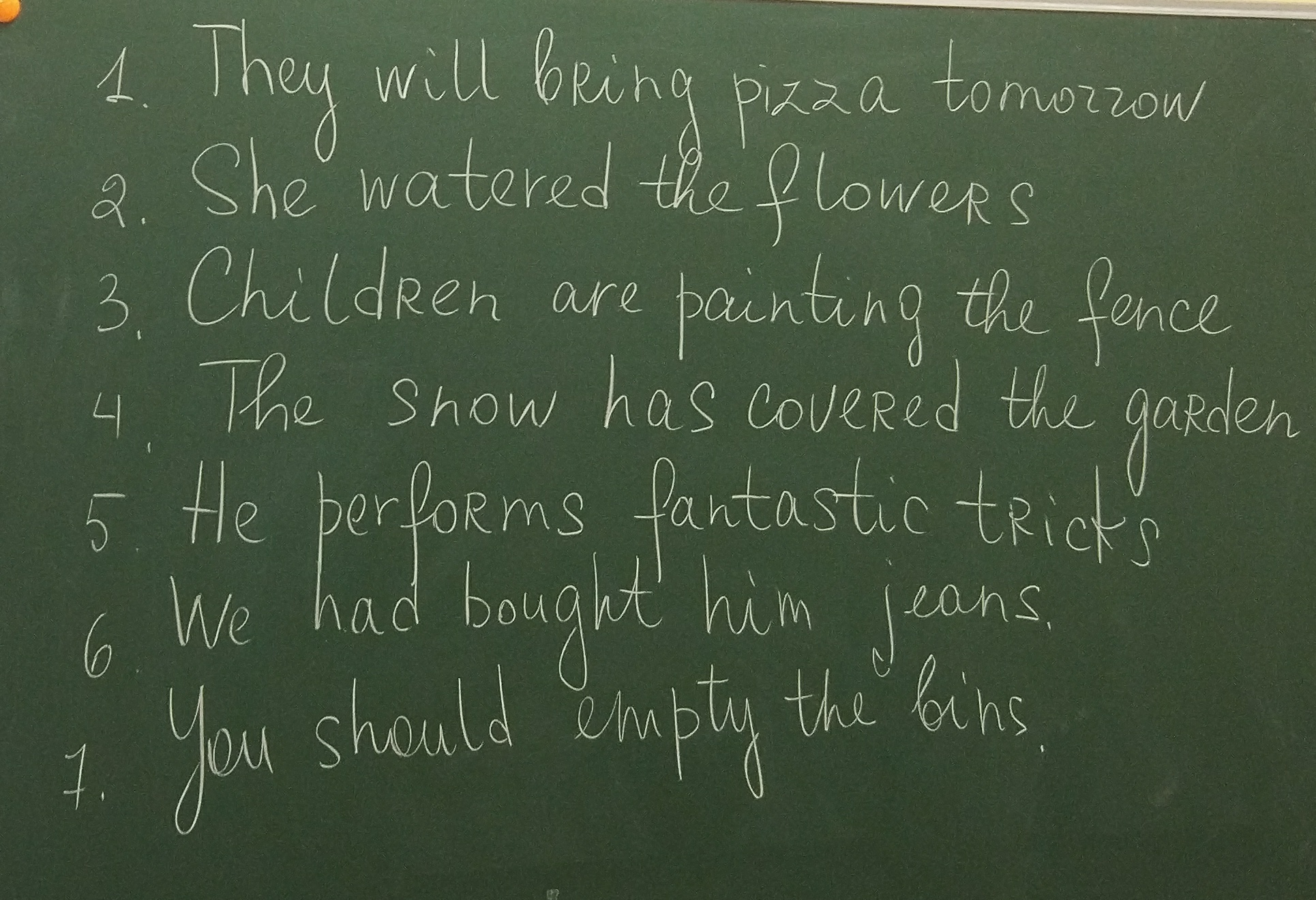 1. The pizza will be brought tomorrow.