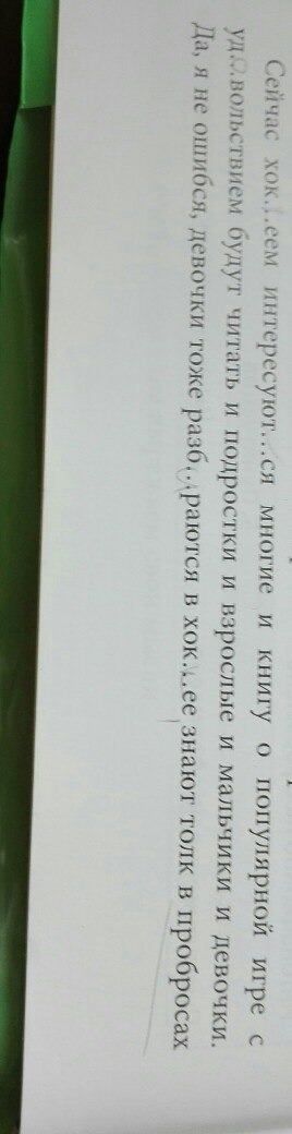 1. Сейчас хоккеем интересуются многие, и книгу о популярной игре с удовольствием будут читать и подростки, и взрослые, и мальчики, и девочки. ...разбираются в хоккее, знают толк в пробросах и буллитах. ...сверстников. ...присутствуешь на матче, болеешь за команду, ставшую родной, радуешься победам и огорчаешься поражениям. ...оторваться...