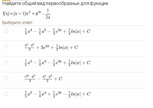 F(x)=1/5*x^5-1/4*x^4+1/3*e^3x-1/3*ln|x|+C