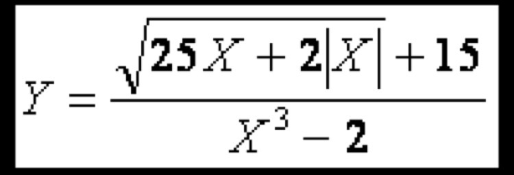 Writeln('Y = ', (sqrt(25*x + 2 * abs(x)) + 15)/(x*x*x - 2));