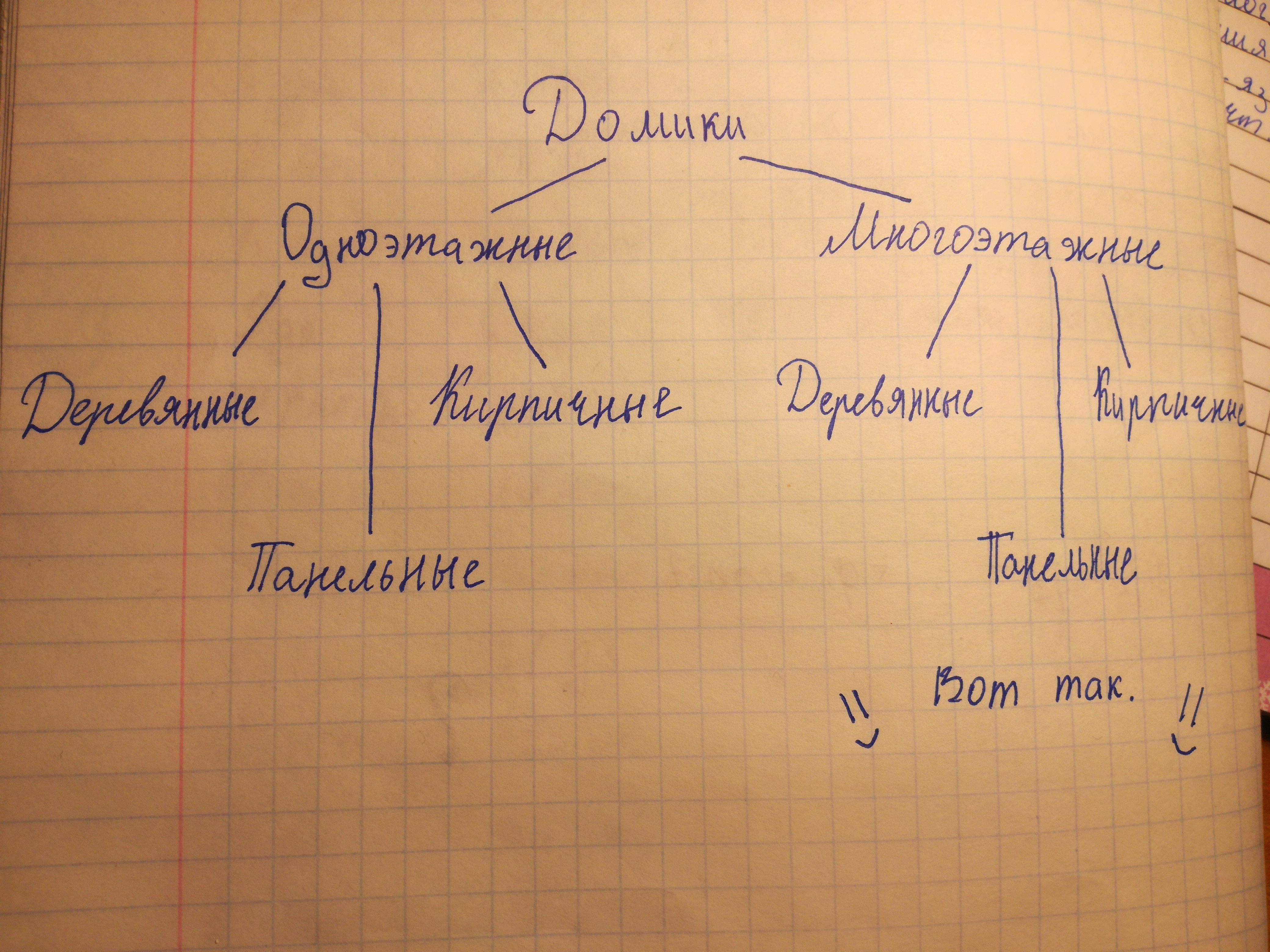 Объекты на рисунке образуют класс "Домики". Составь дерево деление данного класса на подклассы. Используй такие названия подклассов: одноэтажные, многоэтажные, деревянные, кирпичные, панельные дома.