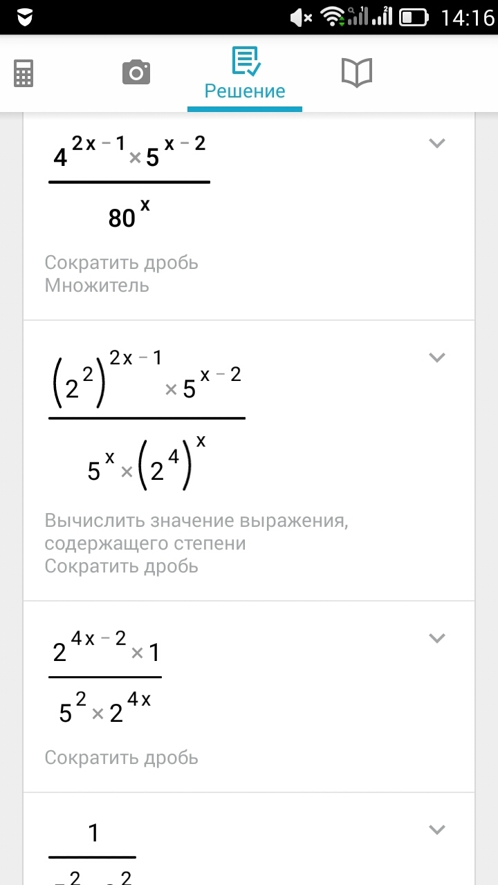 Сократите дробь. В знаменателел 80 в степени n. В числителе: 4 в степени 2n - 1 умножить на 5 в степени n - 2
