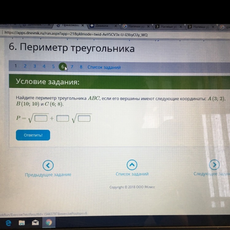 AB=√(10-3)²+(10-2)²=√49+64=√113