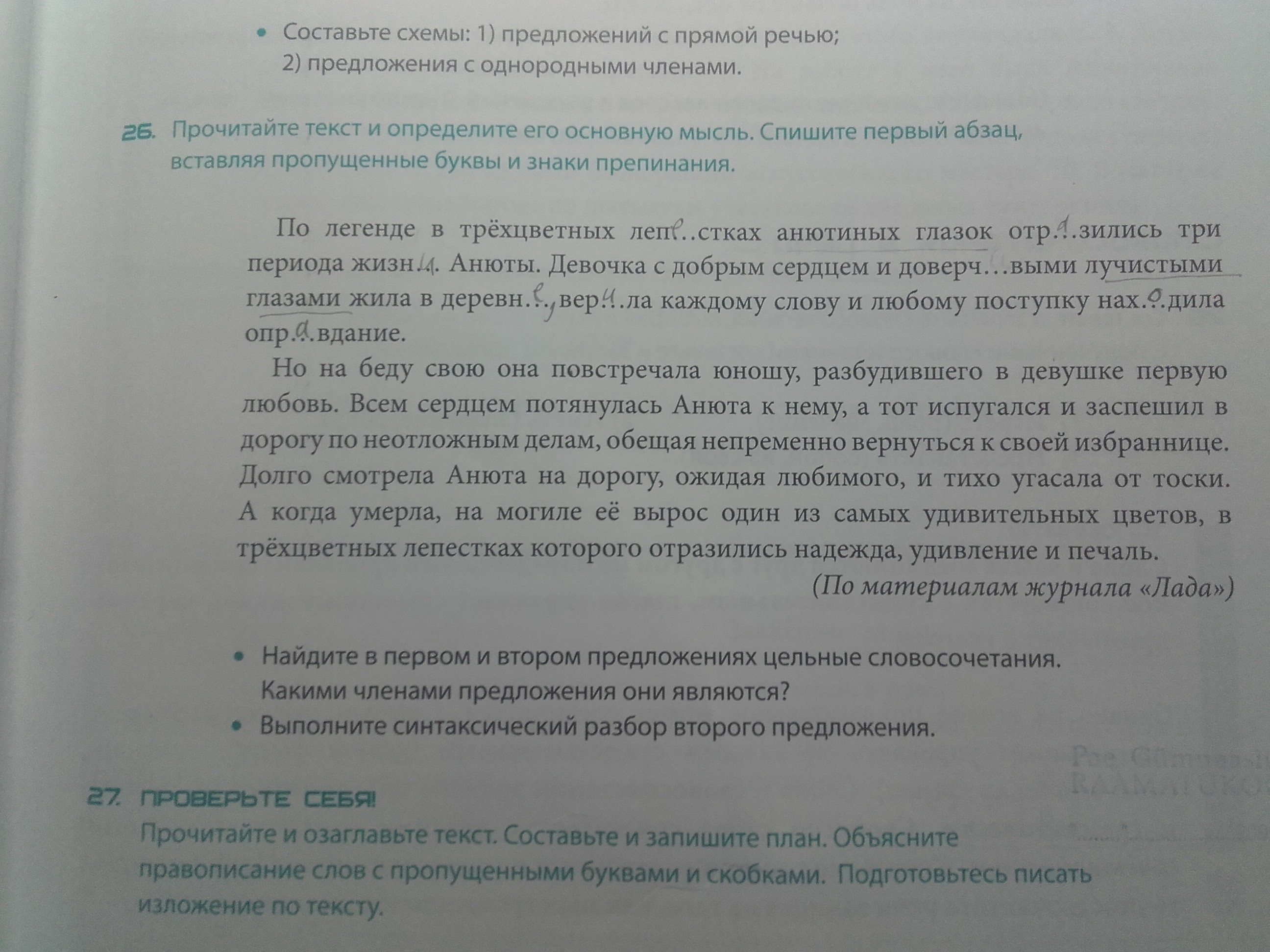Основная мысль: (Первая любовь Анюты) или (Ожидание первой любви)