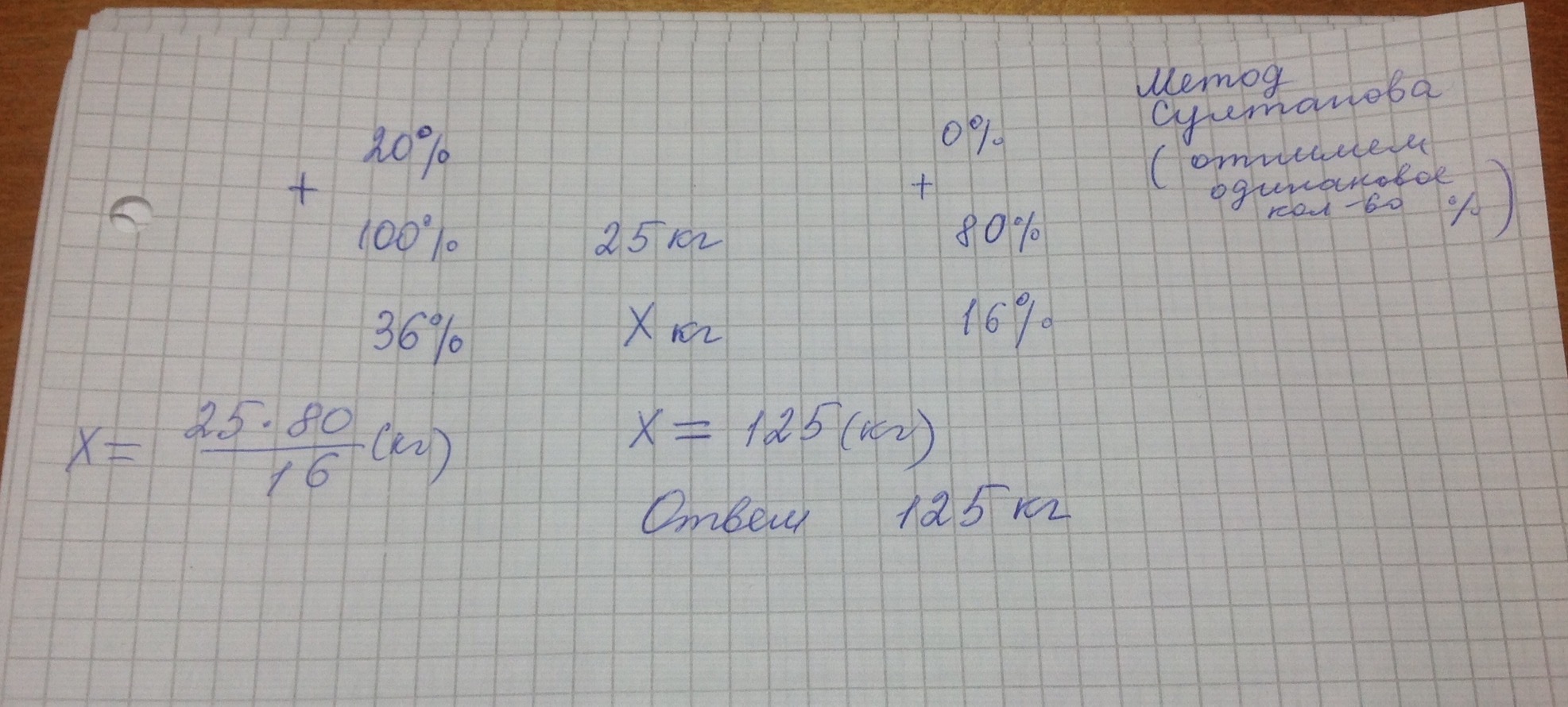 К двадцатипроцентному раствору щёлочи добавили 25 кг щёлочи, в результате чего концентрация раствора стала равна 36%. Найдите массу полученного раствора.