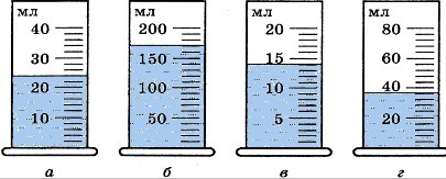 Определить цену деления каждой мензурки и объем налитой воды. (Ответ записать в см3)