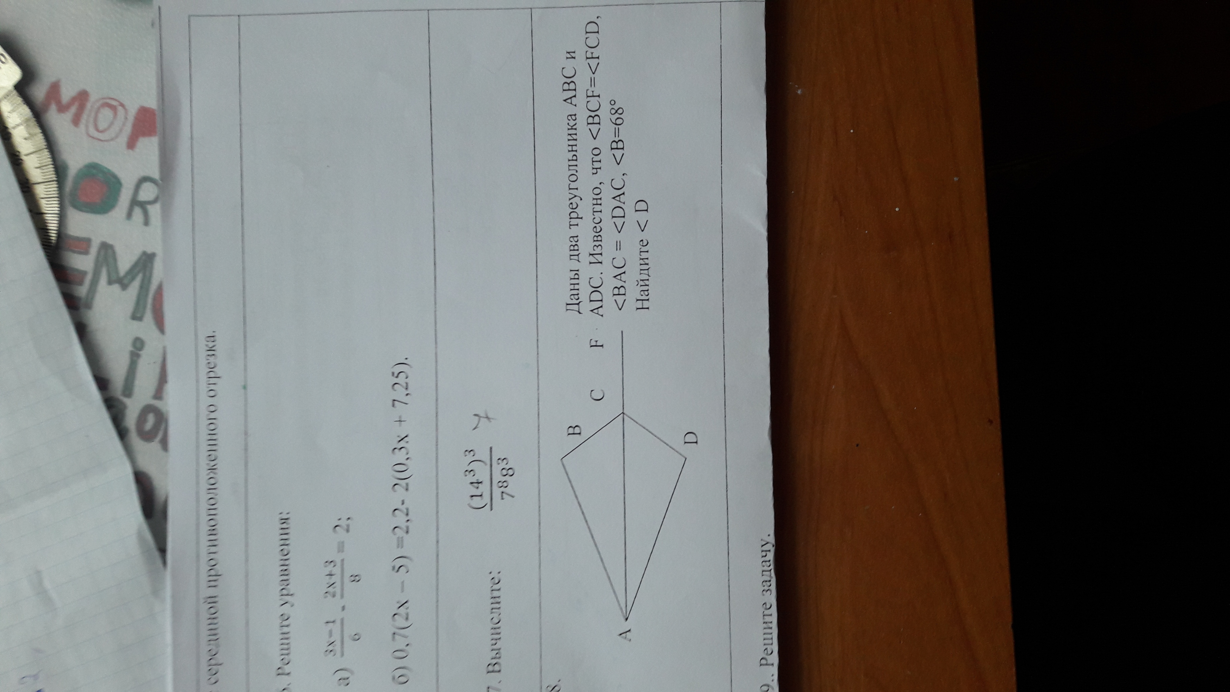 АС -общая, углы ВАС=ДАС по условию, углы ВСА=АСД т, к они являются смежными с углами, которые равны по условию.