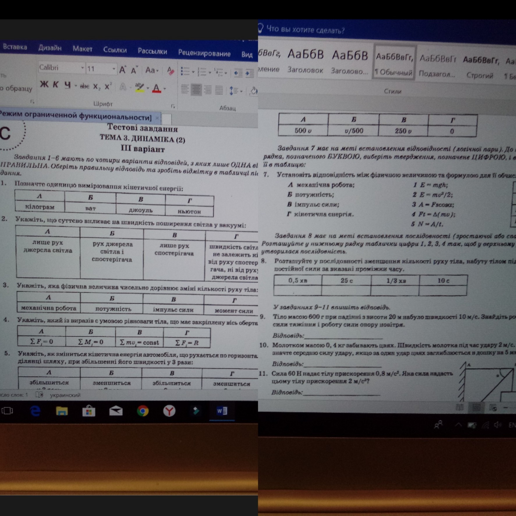 10) s=0.005 м F=m*v²/(2*s)=0.4*4/(2*0.005)=160 H