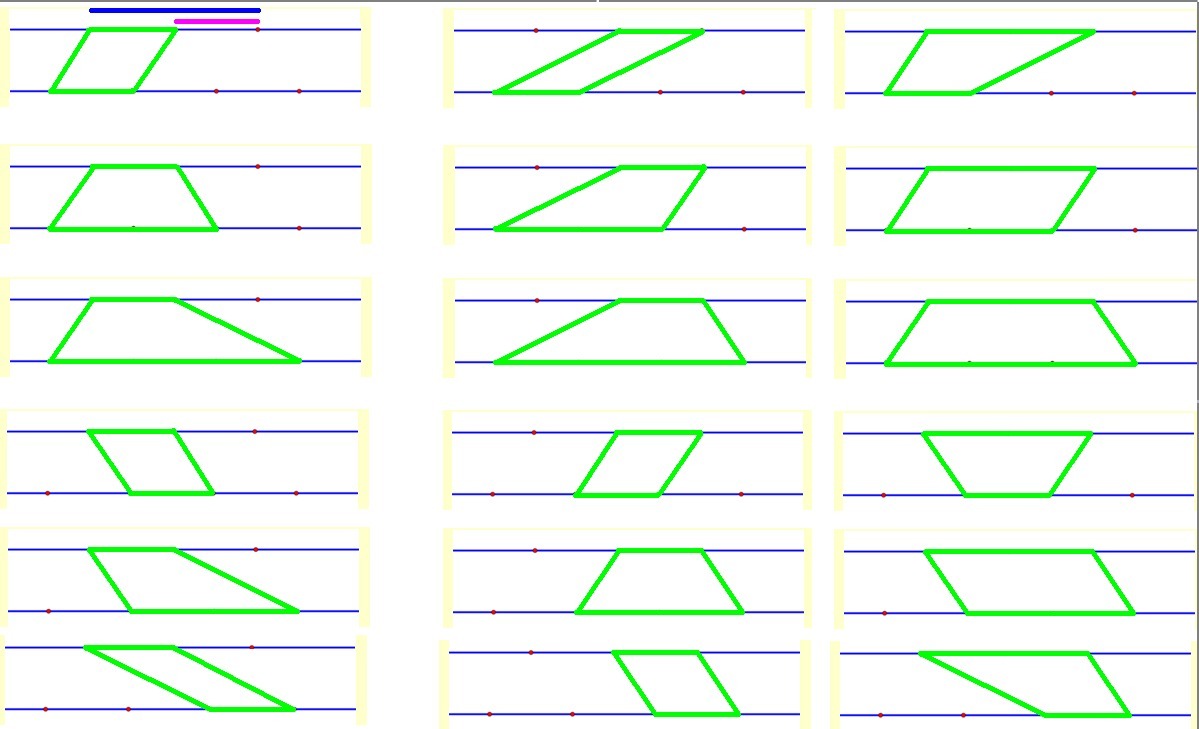 3.На двух параллельных прямых отметили семь точек: три на одной и четыре на другой. Сколько существует четырёхугольников с вершинами в этих точках?