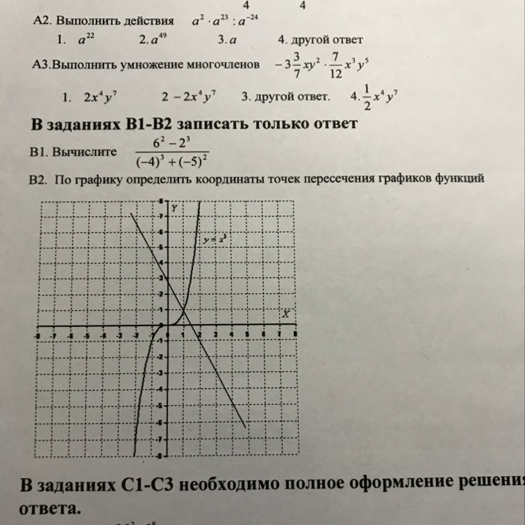 По графику видно что точка пересечения это(1;1). Сначала пишем точку с ось абциса а потом с ось ордината.
