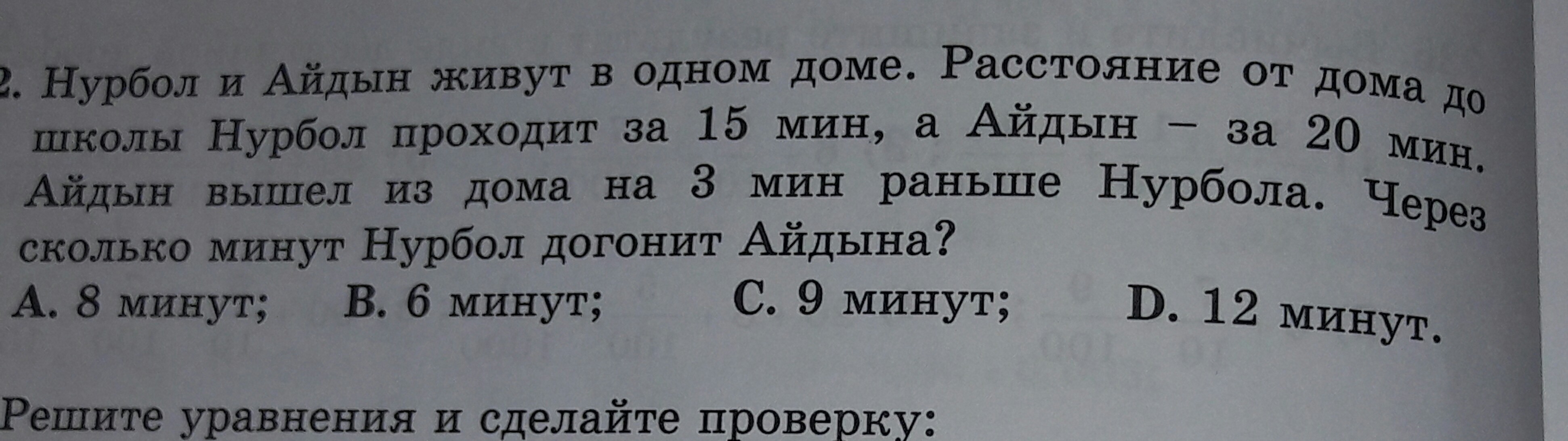 2)5+3=8(мин)- Нурбол догонит Айдына