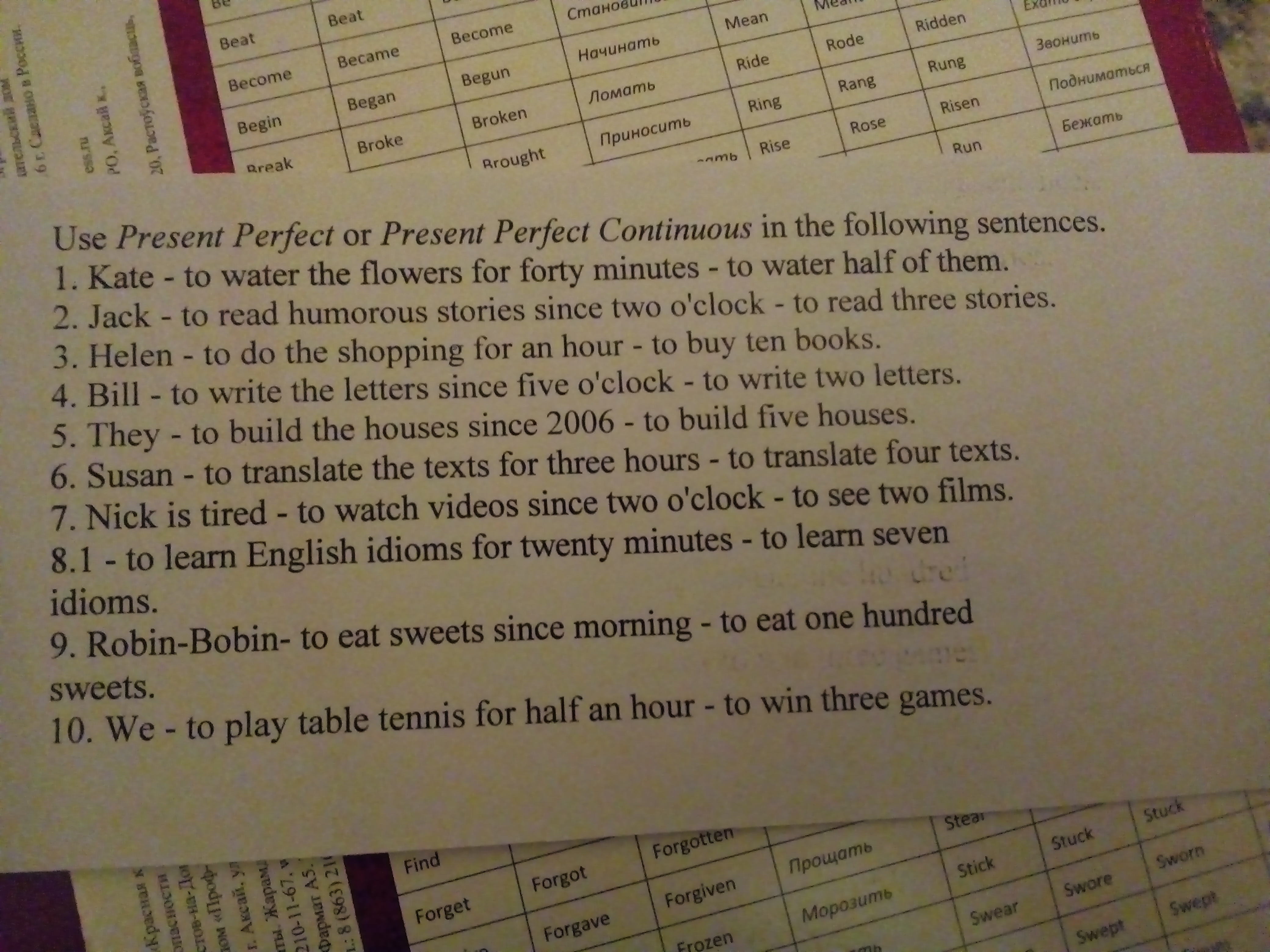 7) Nick is tired - he has been watching videos since 2 o'clock.