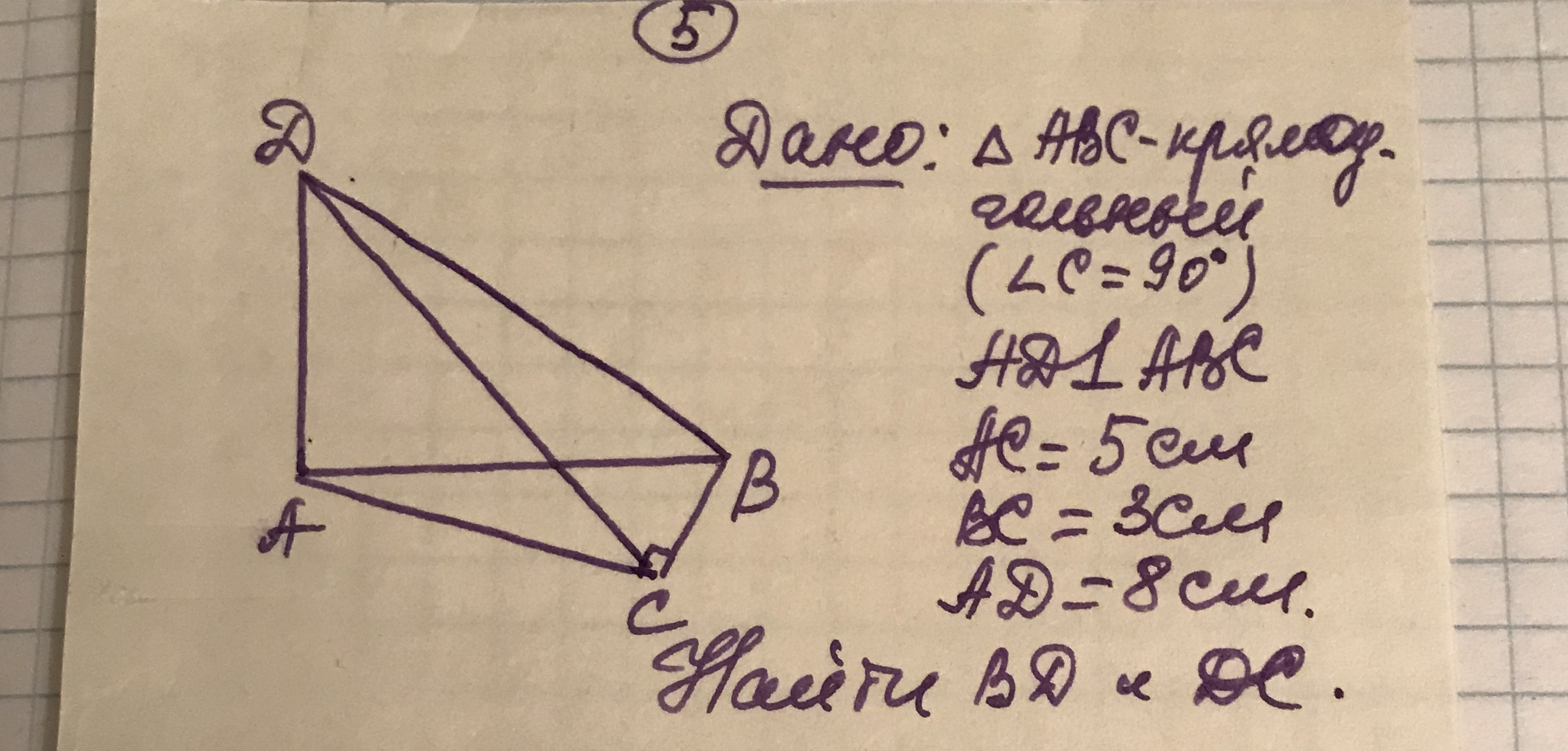ДС² = AC²+АД² = 5²+8² = 25+64 = 89