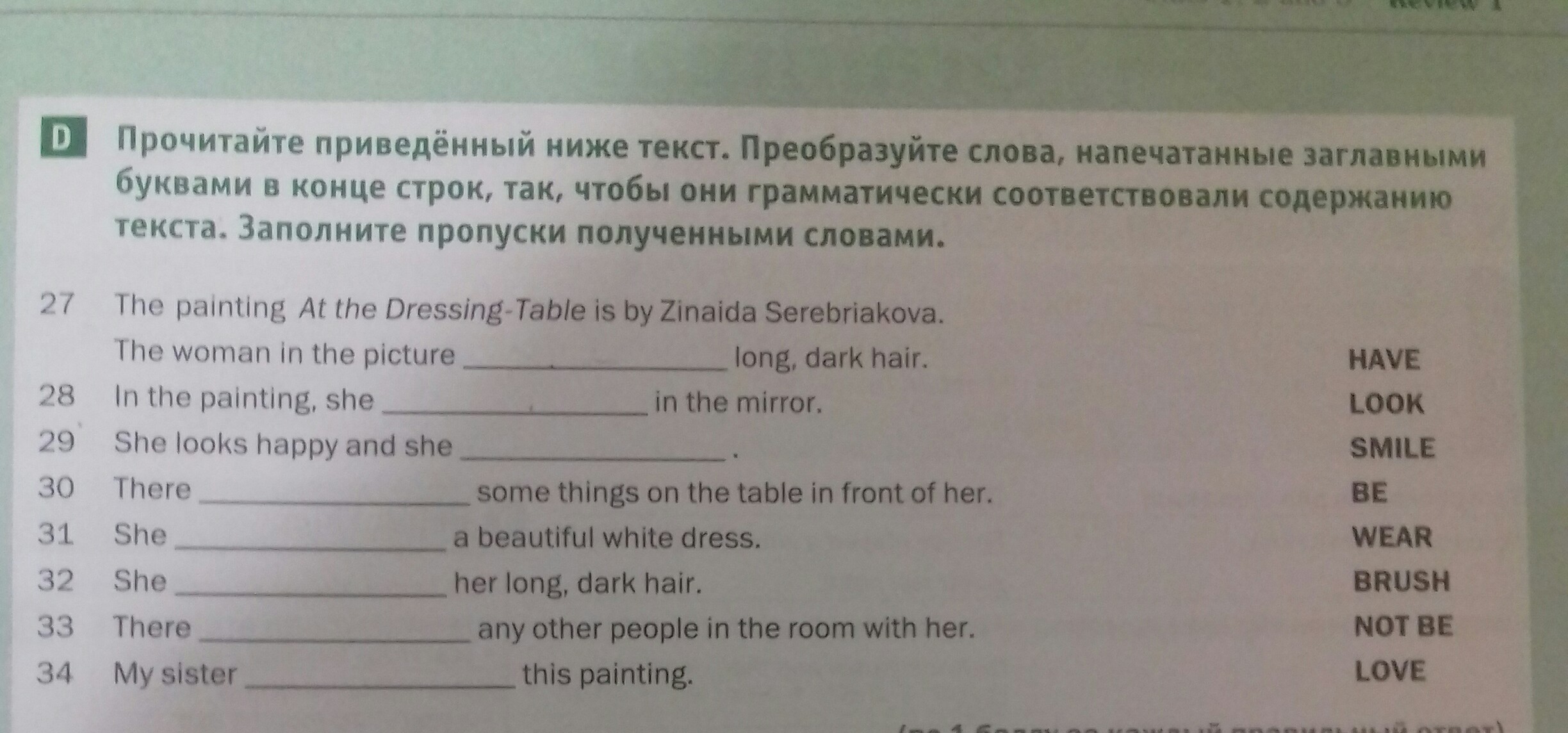 is smiling 30 are 31 is wearing 32 is brushing 33 aren’t 34 loves