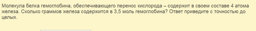 если в 1 молекуле гемоглобина атомов железа в 4 раза больше, то и в 3,5 молях гемоглобина атомов железа будет также в 4 раза больше, т.е количество железа будет равно 4 * 3,5 = 14 моль