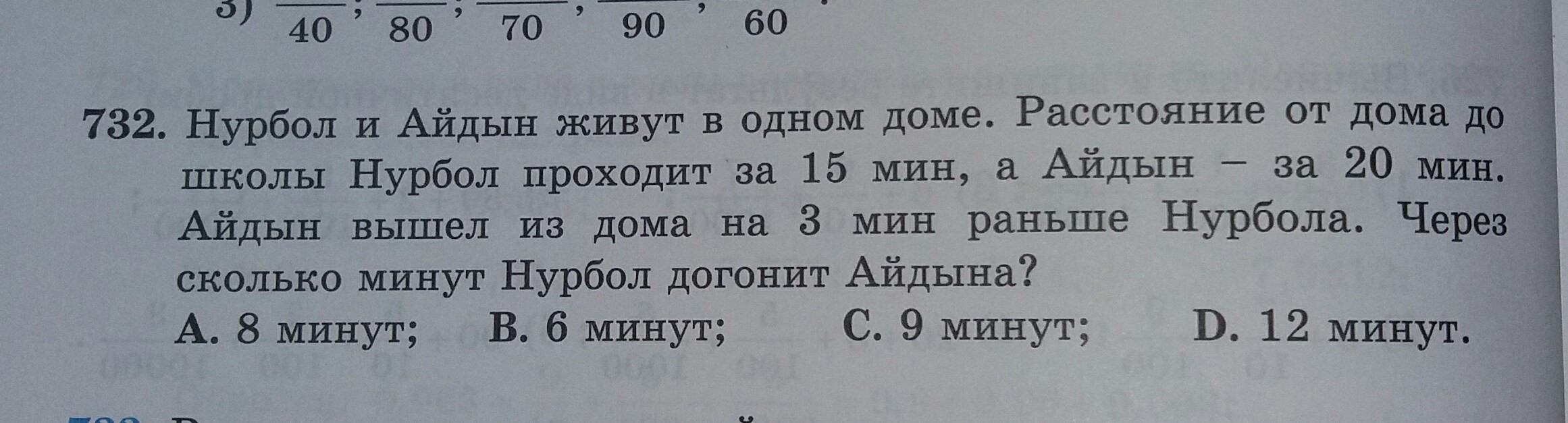 Ответ С) Нурбол догонит Айдына через 9 минут