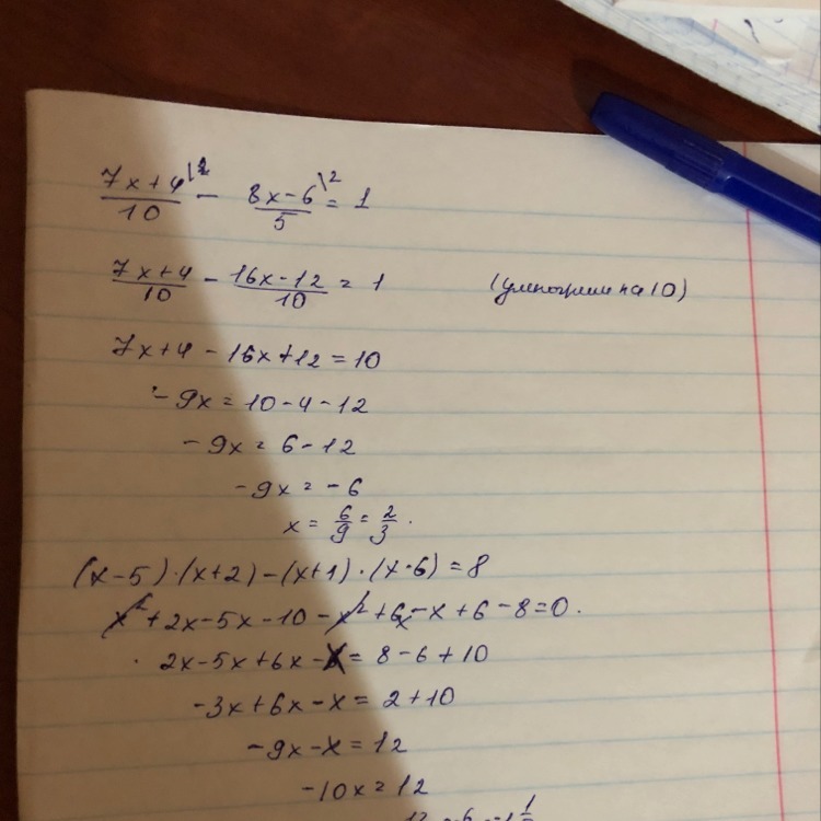 1) (7х+4):10-2(8х-6):5*2=1*10