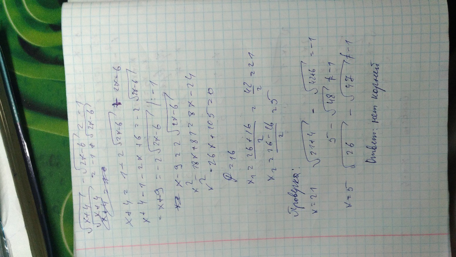 там получаются два корная это x = 5; x = -3 подходит только x =5