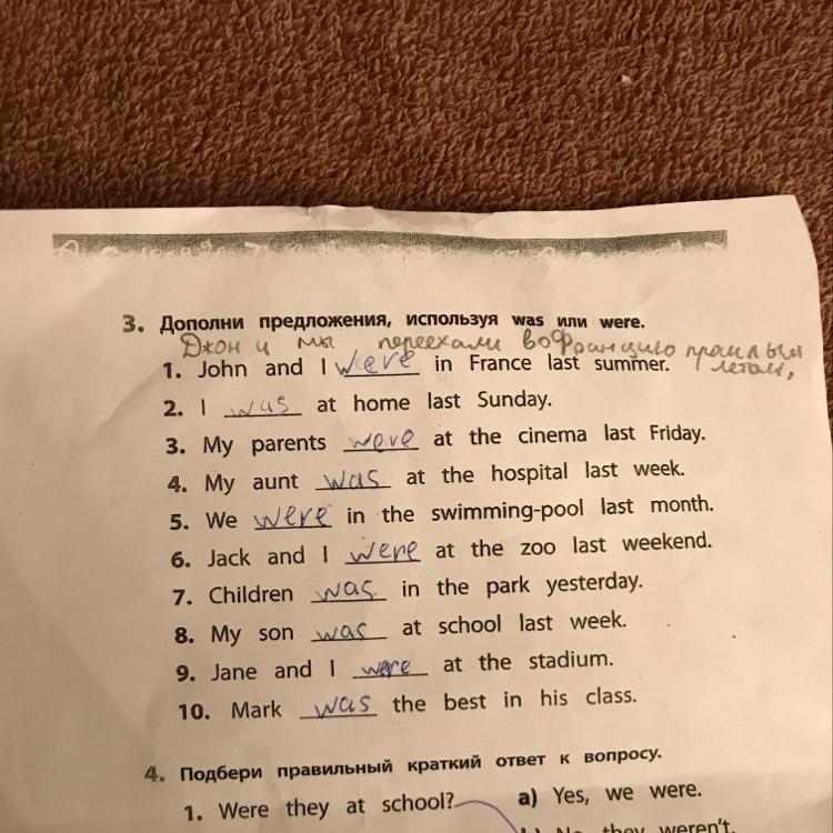 3мои родители были в кино в прошлую пятницу