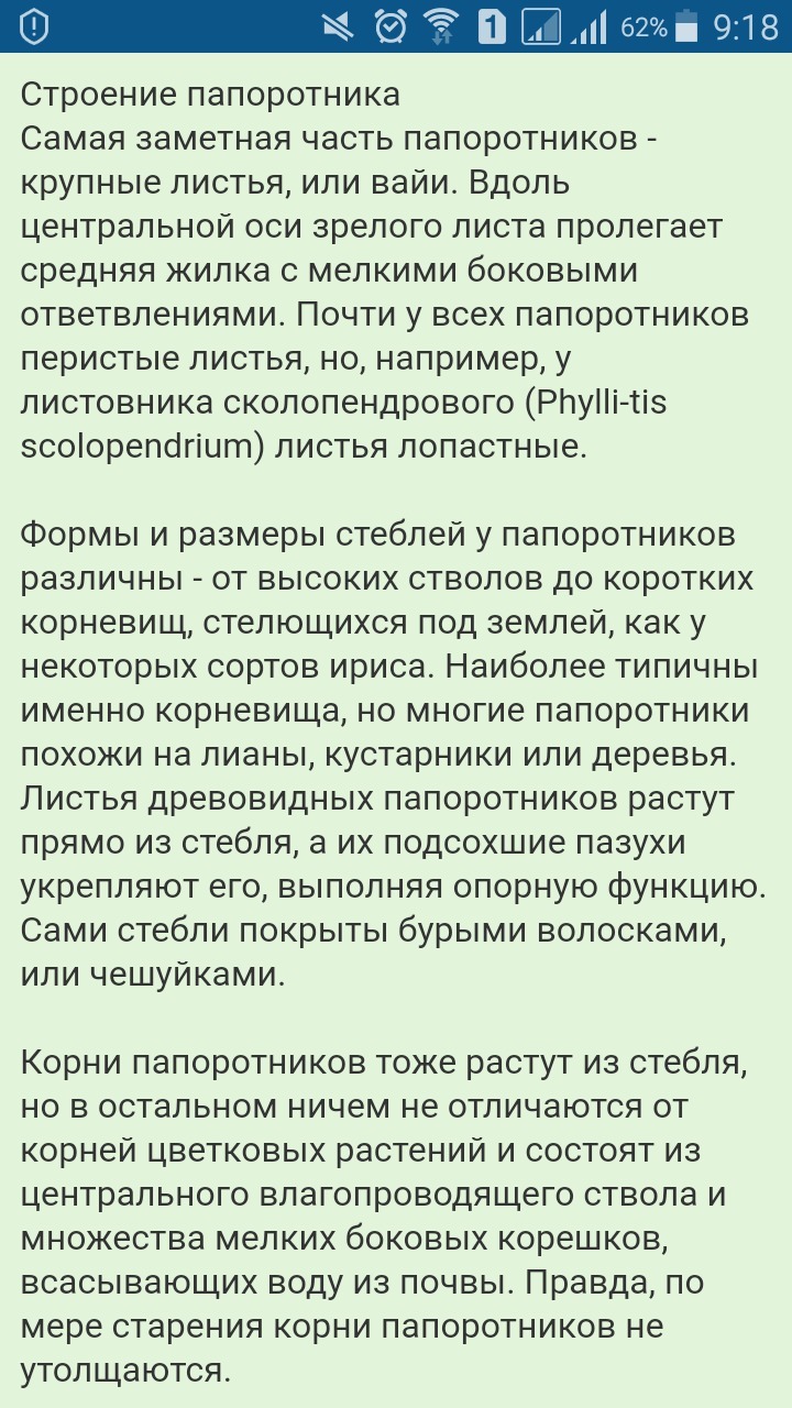Папоротники принадлежат к высшим споровым растениям, это значит у них есть органы и ткани.