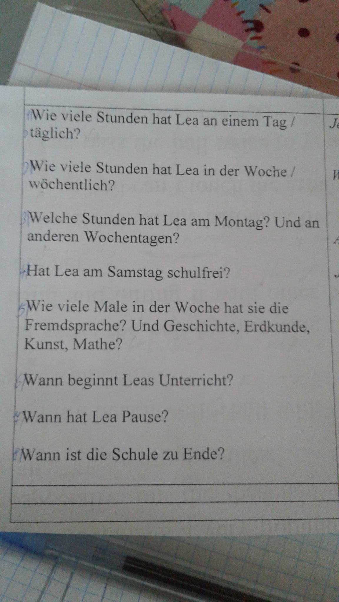 Какие уроки у Леа в понедельник? И в другие дни недели?
