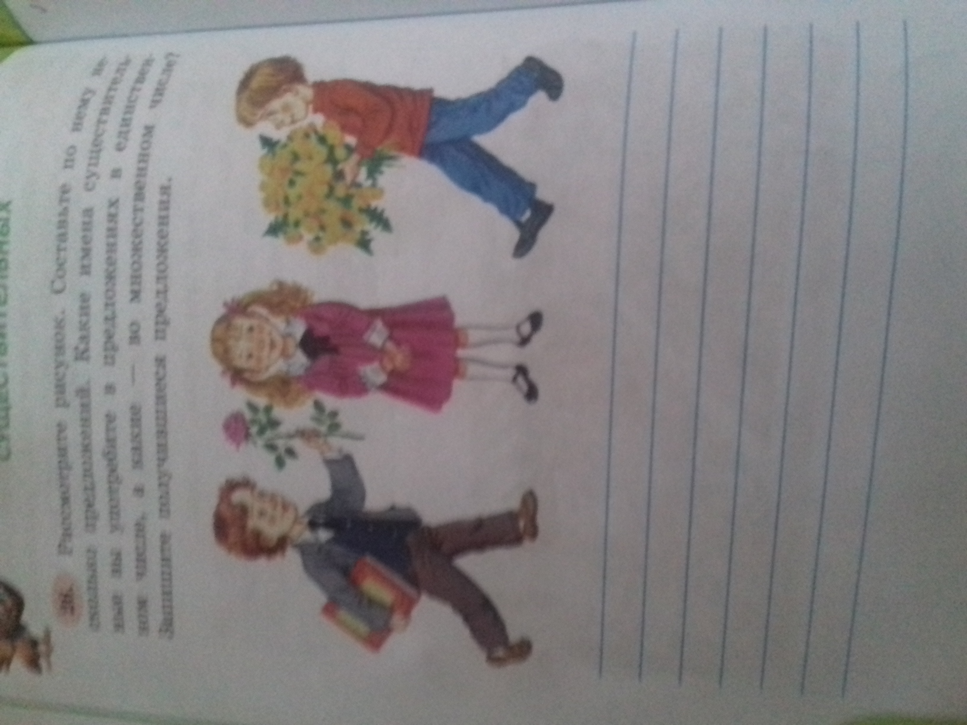 Рассмотрите рисунок. Составьте по нему несколько предложений, используя имена существительные во множественом числе и в единственном числе.