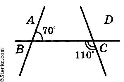 Угол ABC равен 70 градусов а угол BCD равен 110 градусов Могут ли прямые AB и CD быть параллельными пересекающимися