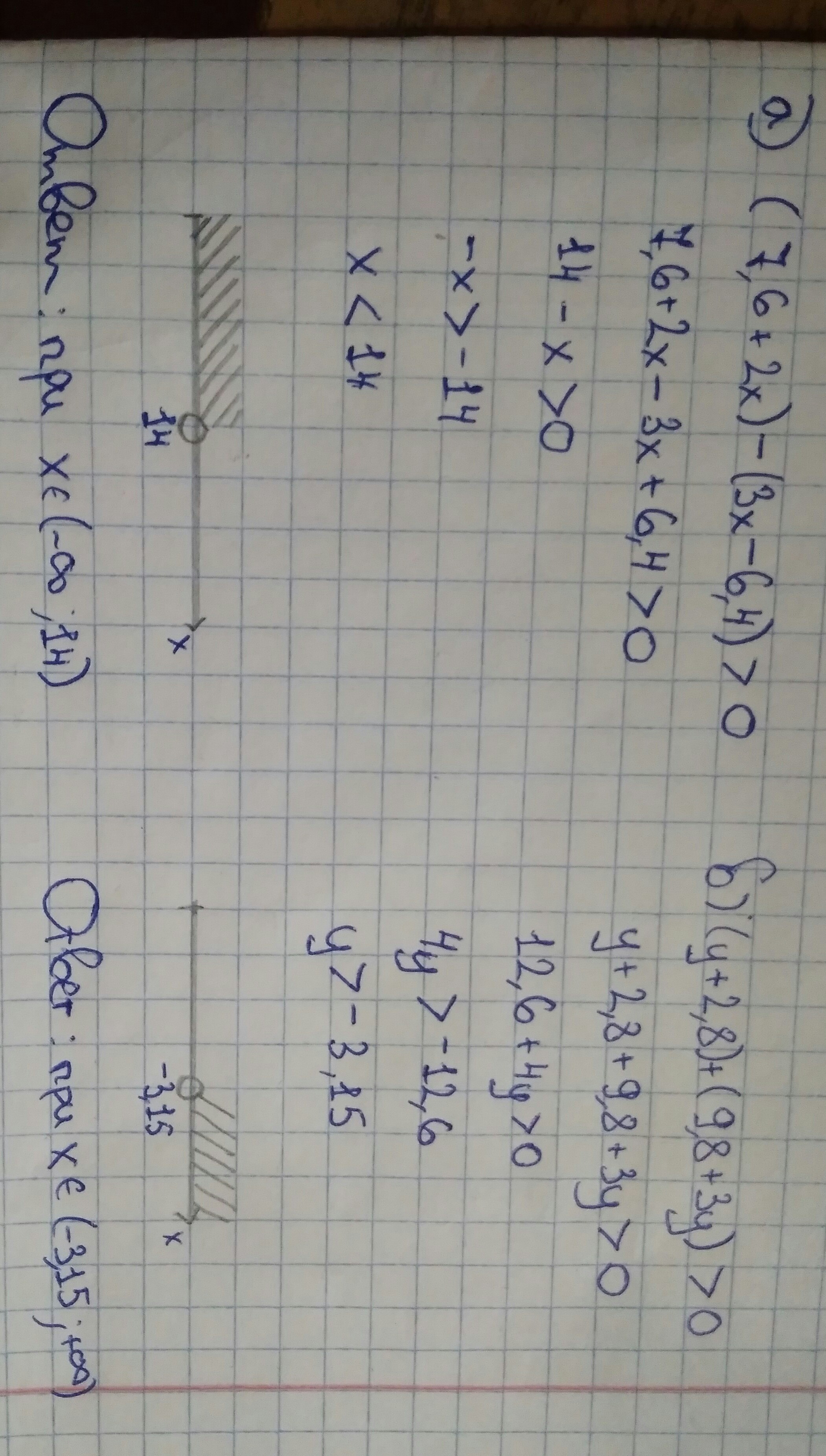 а) При каких значениях х разность (7,6+2х)-(3х-6,4) будет положительным числом?