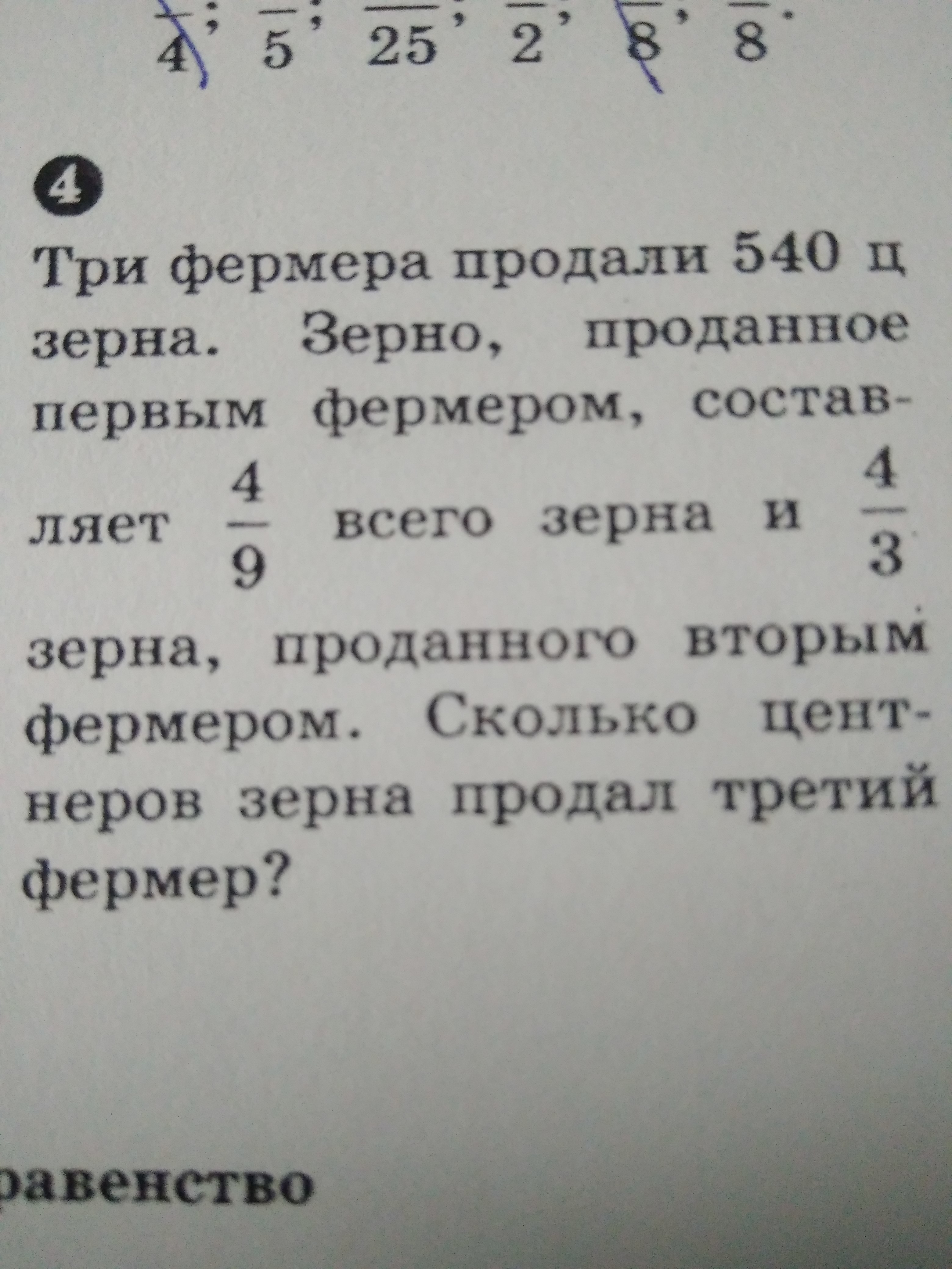 540× 4/9 = 240 ц - зерна продал первый фермер