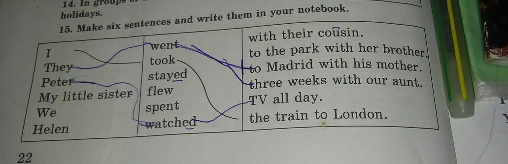 4) My little sister spent three weeks with our aunt.