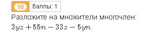 2)3yz+55n-33z-5yn=y(3z-5n)-11(3z-5n)=(y-11)(3z-5n)