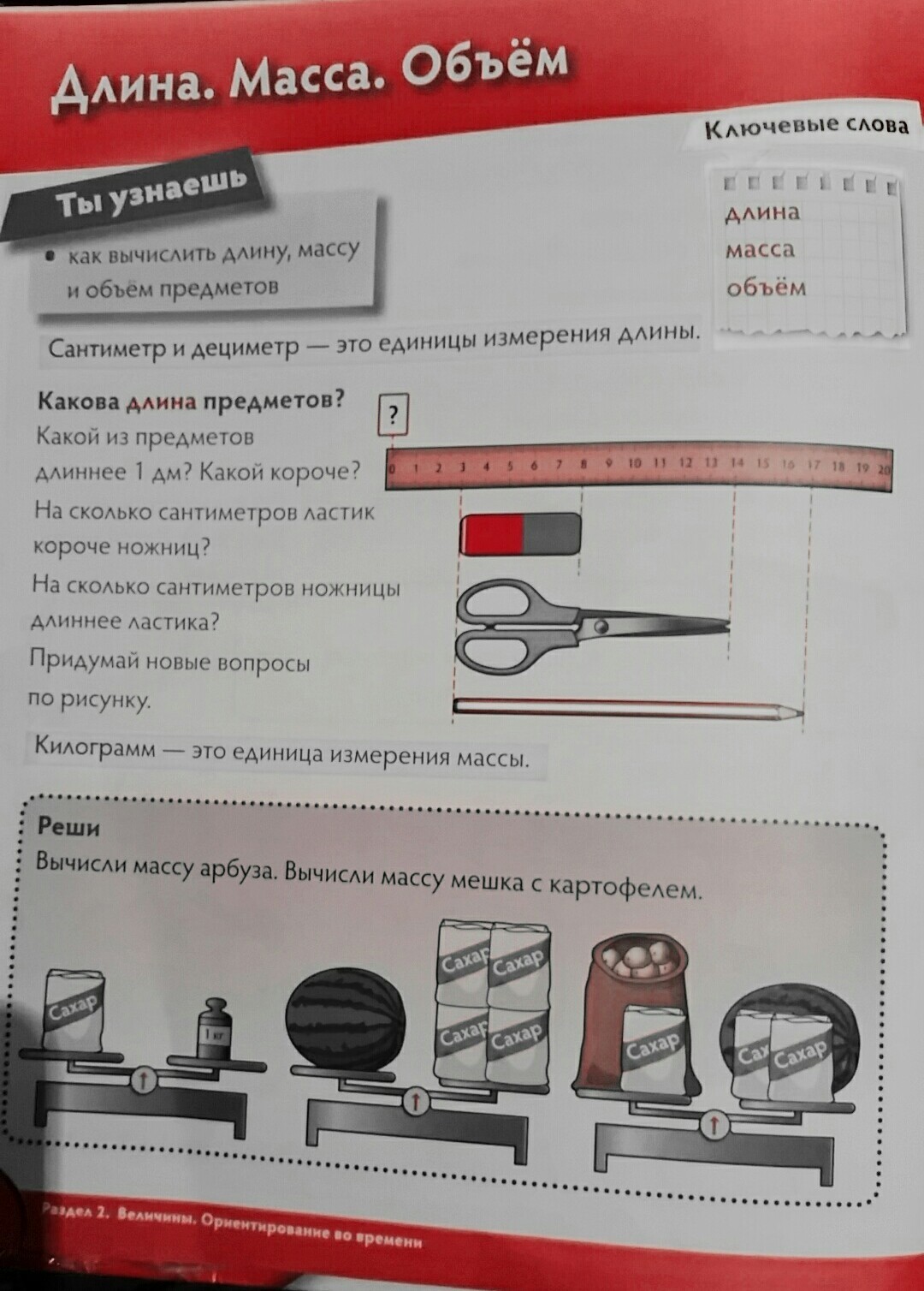 На сколько ножницы короче карандаша? На сколько карандаш длиннее ножниц?