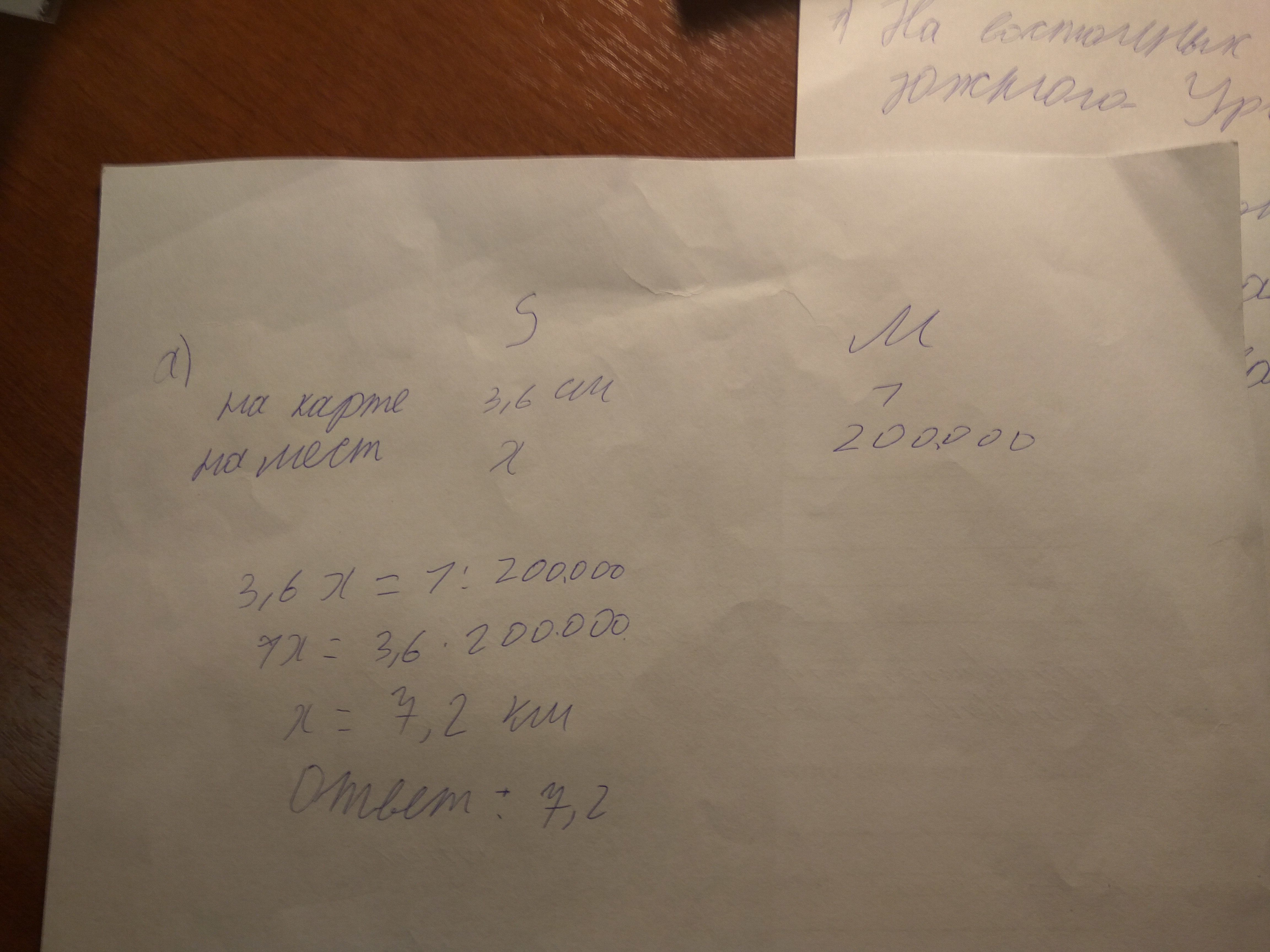 а) Найдите расстояние между сёлами на местности, если масштаб карты 1:200000.