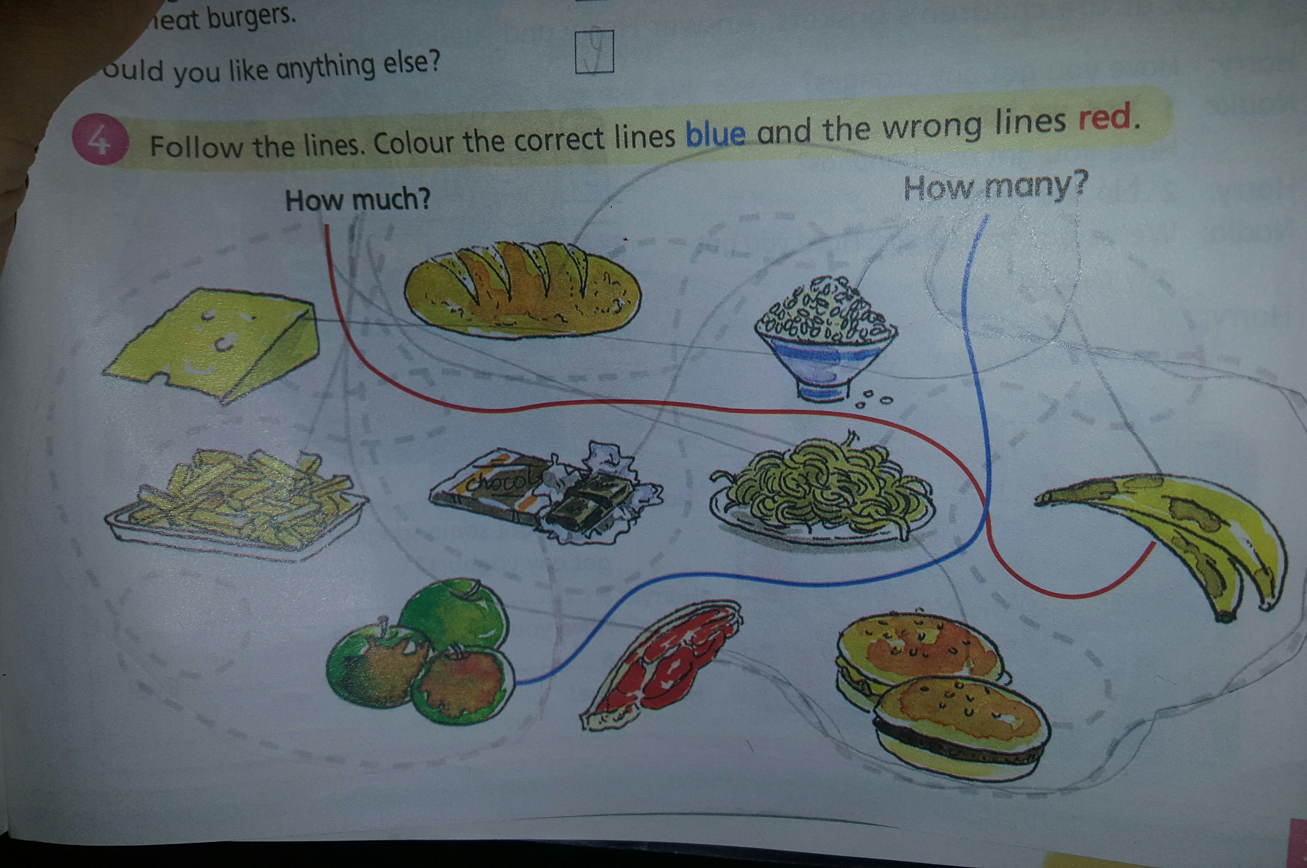 how much - bread, rice, chocolate, spaghetti, cheese, meat, fries\chips.