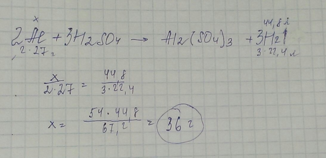 вычислите массу алюминия который потребуется растворить в разбавленной серной кислоте чтобы получить 44.8 л (н.у ) водорода