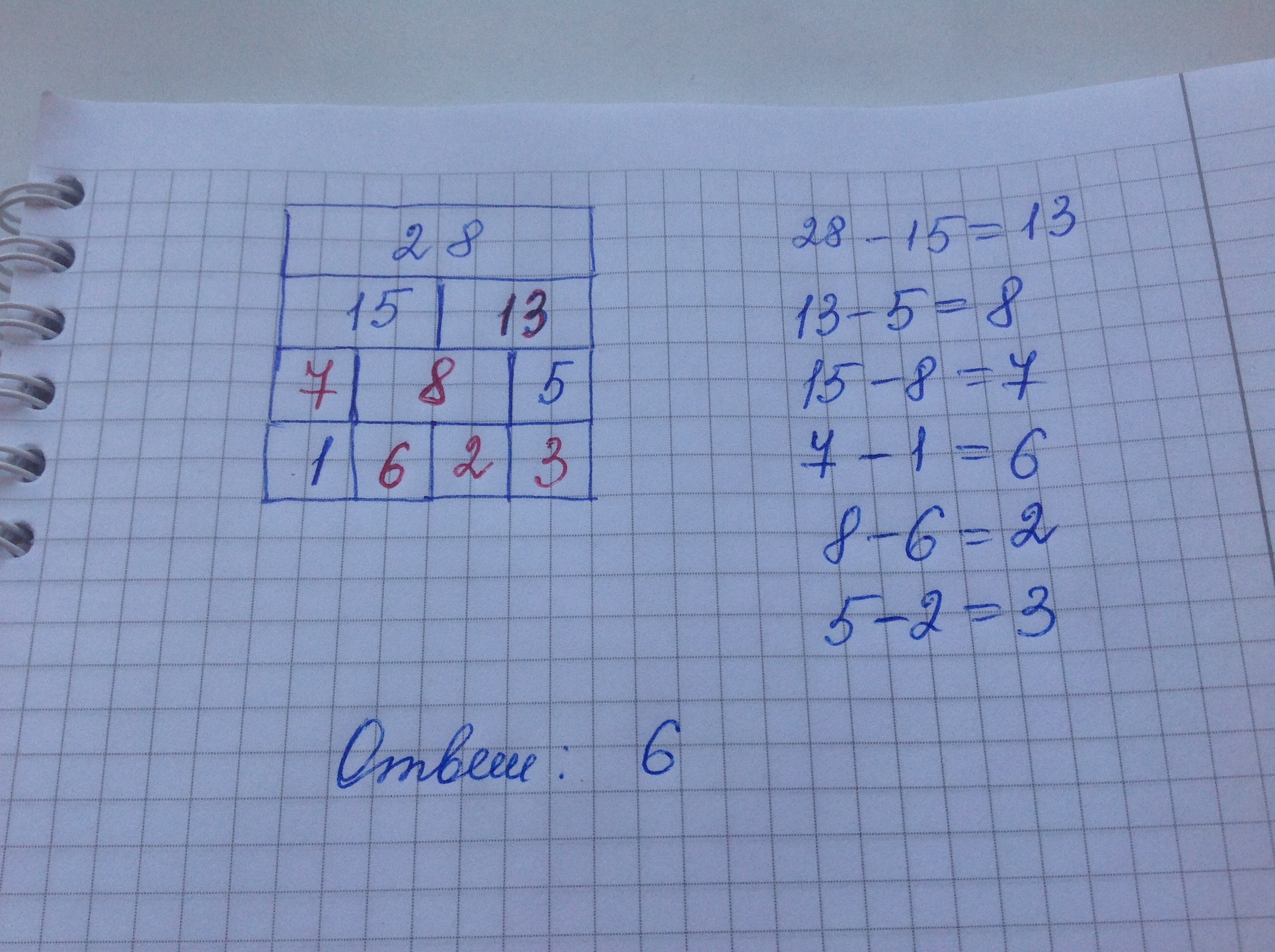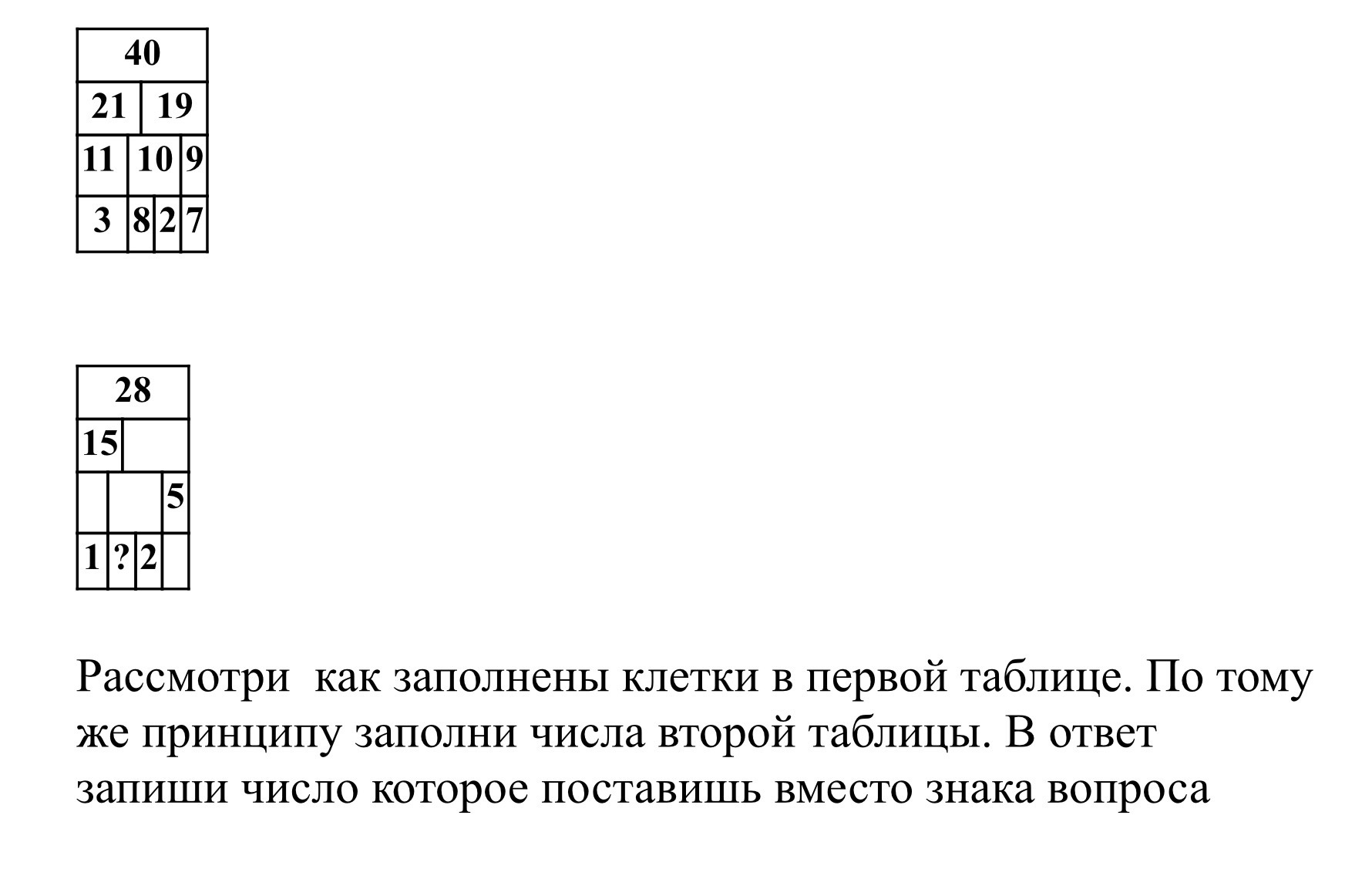 Рассмотри как заполнены клетки в первой таблице. По тому же принципу заполни числа второй таблицы. В ответ запиши число которое поставишь вместо знака вопроса