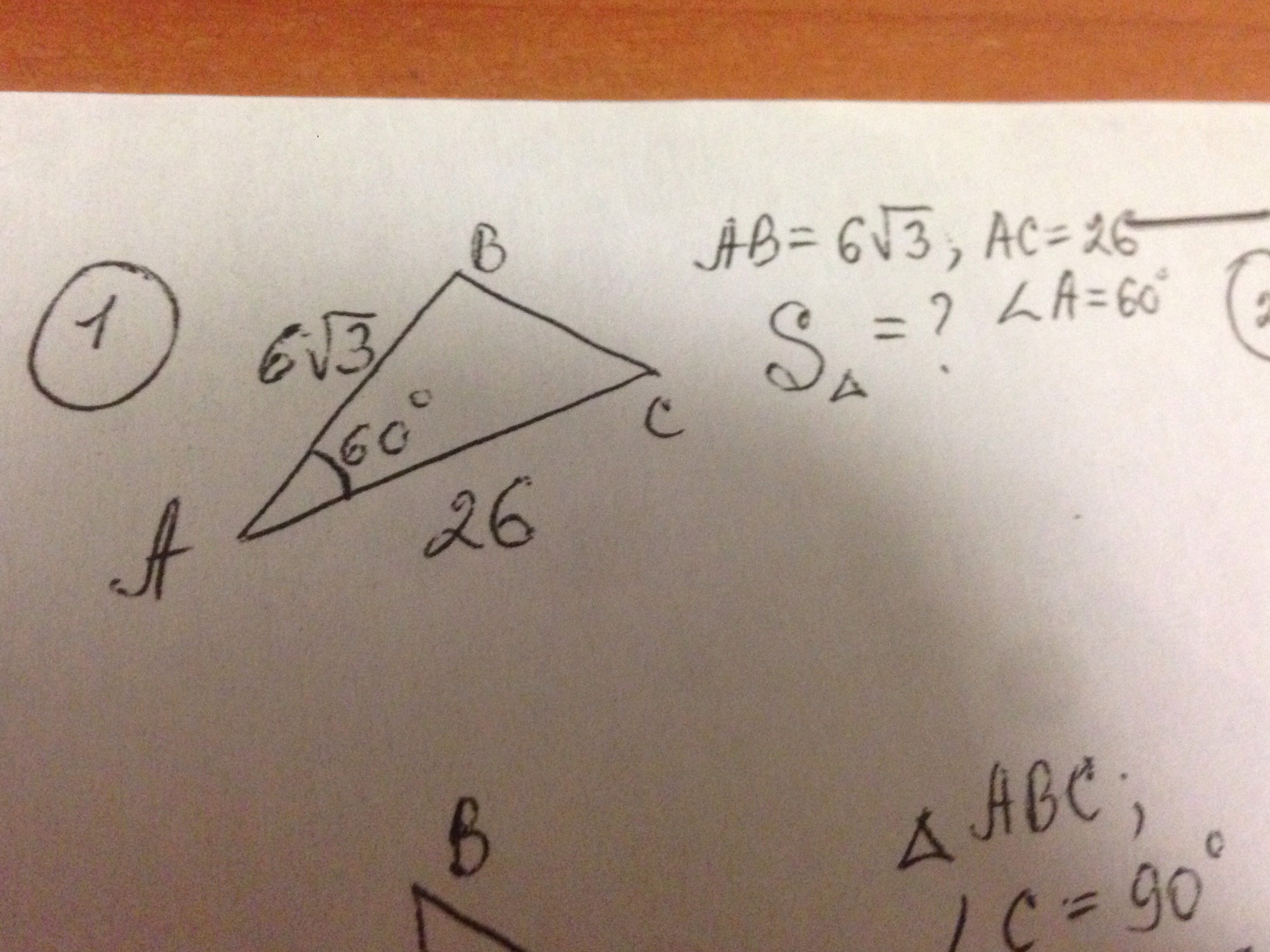 S=0.5*AB*AC*sinA=0,5*26*6√3*√3/2=117.