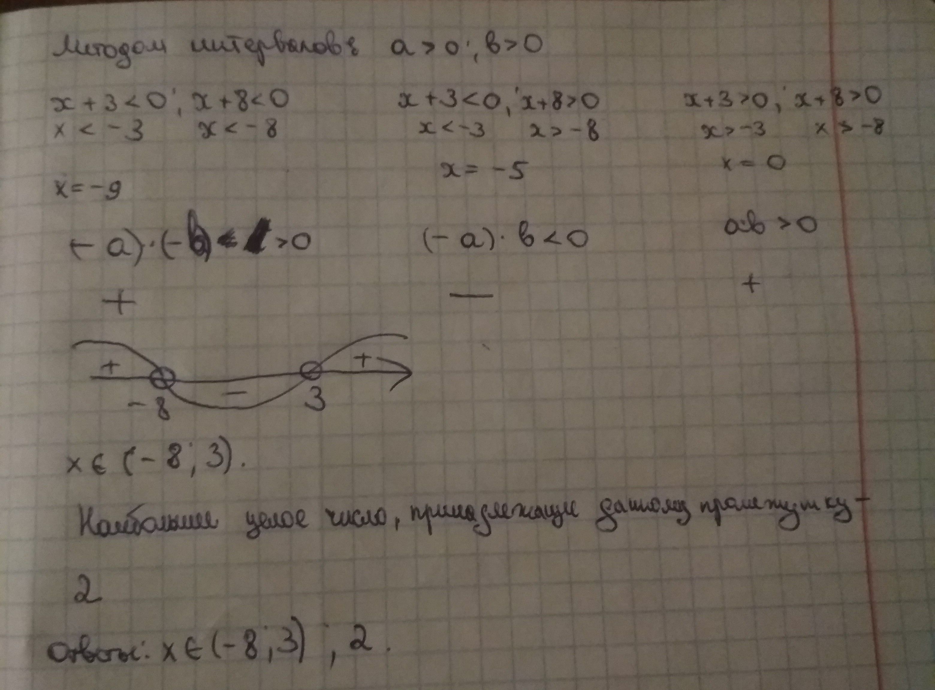 Ответ: хє (-8;3); 2. Решение на фотографии