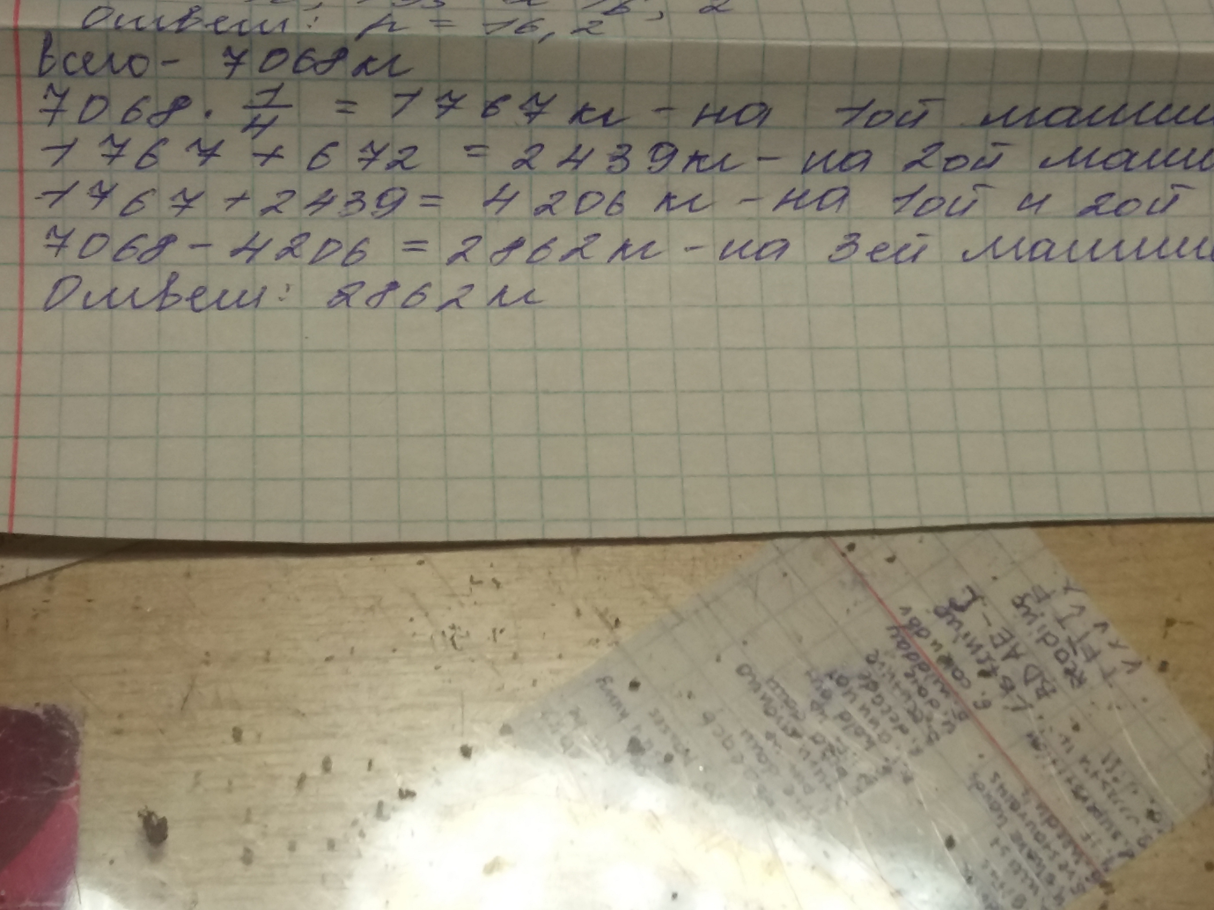 3) 7068 - (2439+1767)=2862(кг) - на 3 машине