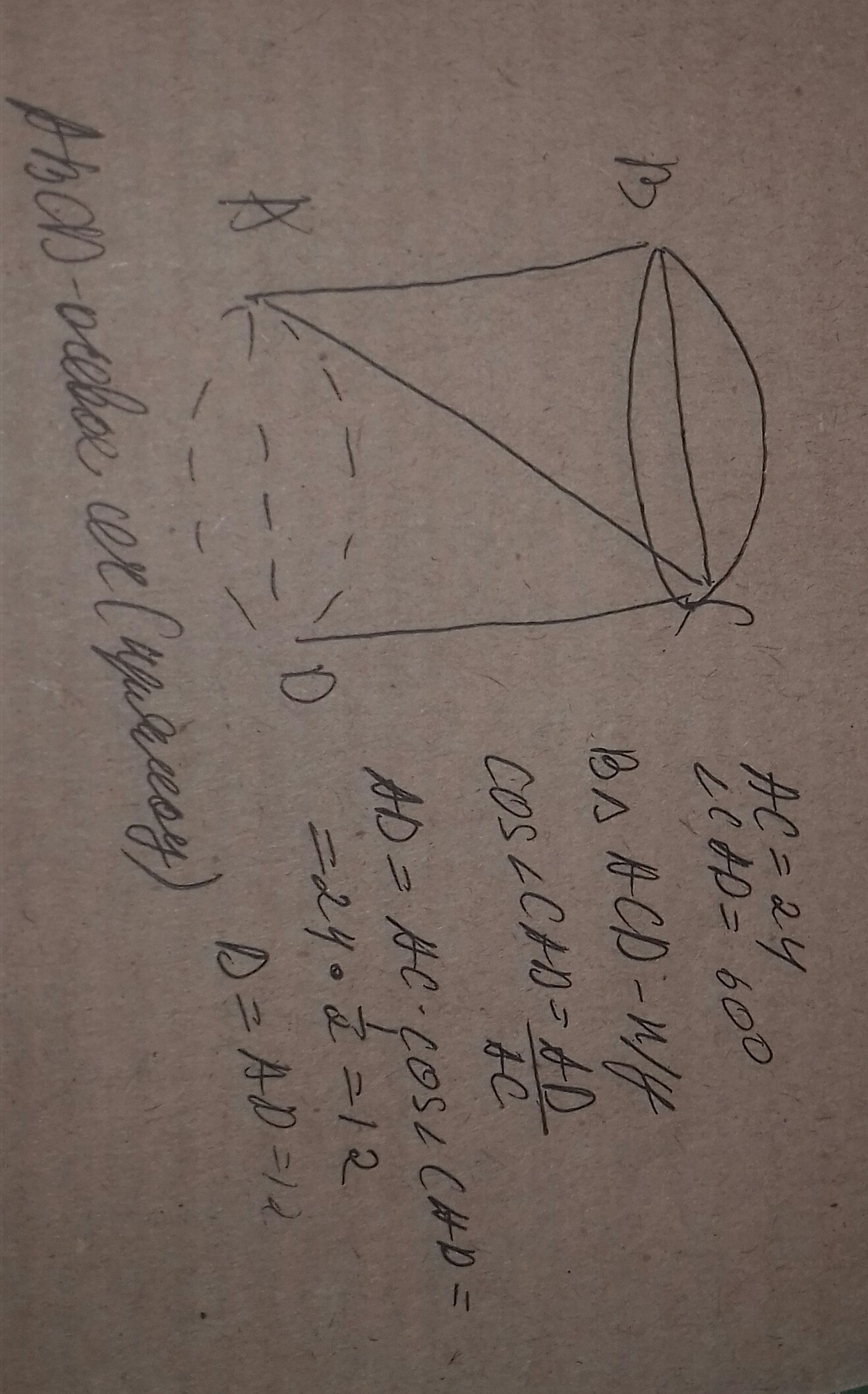 Диагональ осевого сечения цилиндра равна 24 см, с основанием цилиндра она образует угол в 60°.