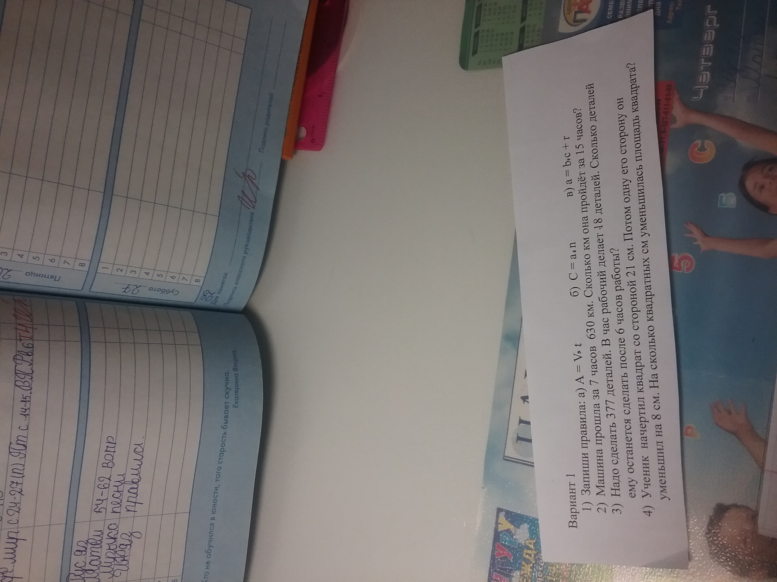 №2) 1.)630 / 7= 90( км) - за один час.2.) 90*15=1350( км) -за 15часов. №3)1.)18*6=108(деталей) за 6 часов;2.)377-108=269(деталей)- останется сделать ему после 6ч. работы.