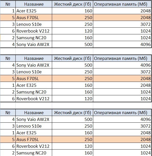 Во вложении показана сортировка таблицы, выполненная в Excel 2007