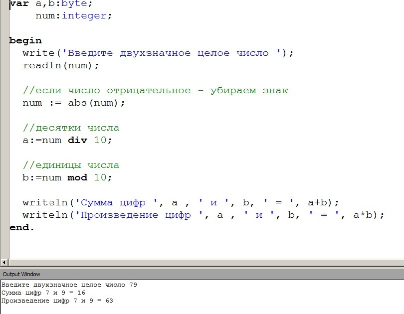 writeln('Произведение цифр ', a , ' и ', b, ' = ', a*b);