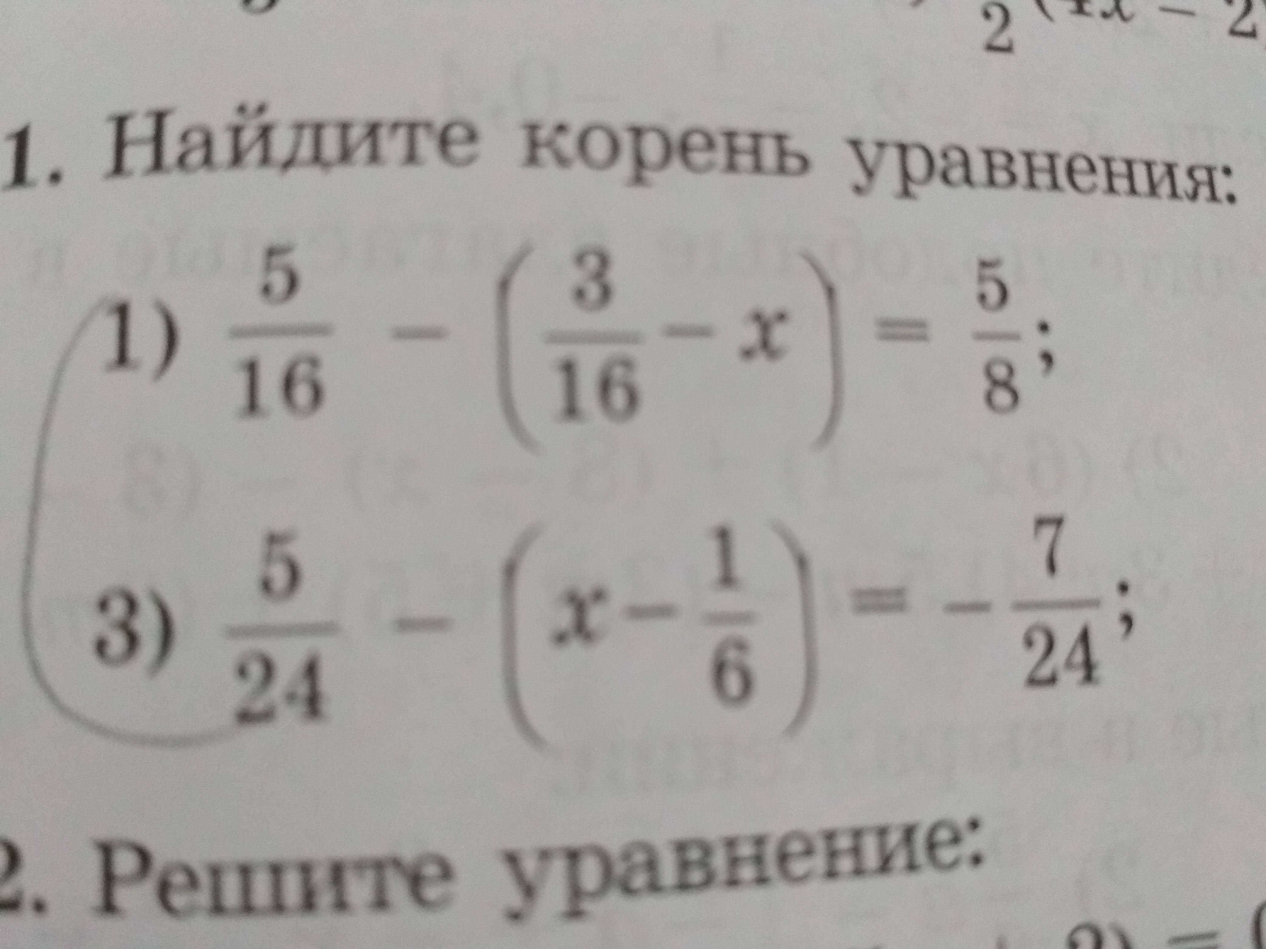 1) frac{5}{16} -( frac{3}{16} -x)= frac{5}{8}  \  \ frac{5}{16} - frac{3}{16} +x= frac{5}{8} \  \  frac{1}{8} +x= frac{5}{8}  \  \ x= frac{5}{8} - frac{1}{8}  \  \ x= frac{1}{2}  \  \  \ 3) frac{5}{24} -(x- frac{1}{6} )=- frac{7}{24}  \  \ frac{5}{24} -x+frac{1}{6} =- frac{7}{24}   \  \  frac{3}{8} -x=- frac{7}{24}  \  \ -x=- frac{7}{24} - frac{3}{8}  \  \ -x=- frac{2}{3}  \  \ x= frac{2}{3}