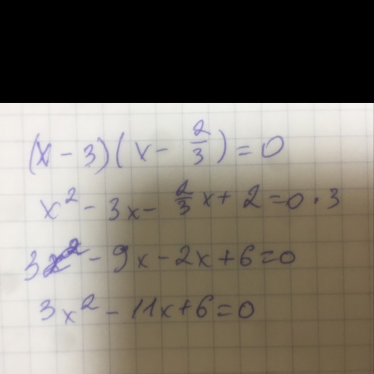 Составьте квадратное уравнение,имеющие корни, равные 3 и 2/3, преобразуйте его так,чтобы все коэффициенты были целыми числами.