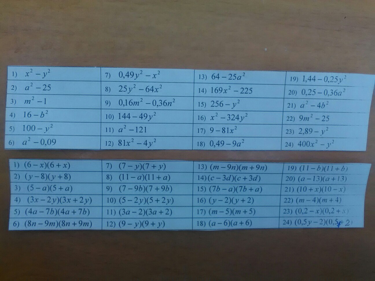 7. (0,7y-x)(0,7y+x)