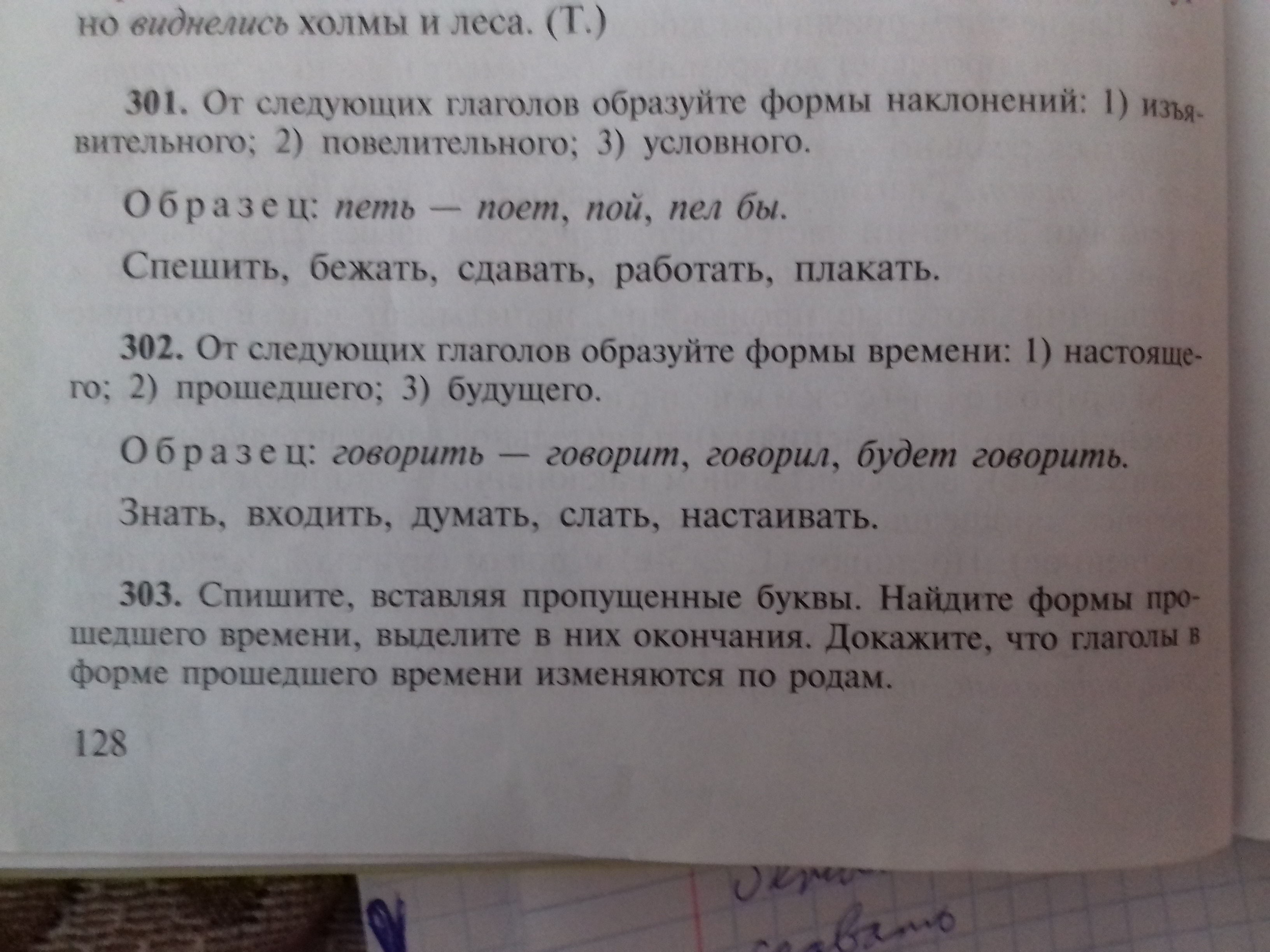 Спешить- спешит, спеши, спешил бы. Бежать- бежит, беги, бежал бы. Сдавать- сдает, сдавай, сдал бы. Работать- работает, работай, работал бы. Плакать- плачет, плачь , плакал(а) бы