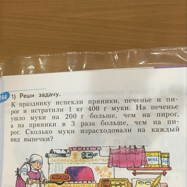 из этого следует,что на пирог ушло 240 гр муки,на пряники 720 гр,а на печенье 440 гр муки