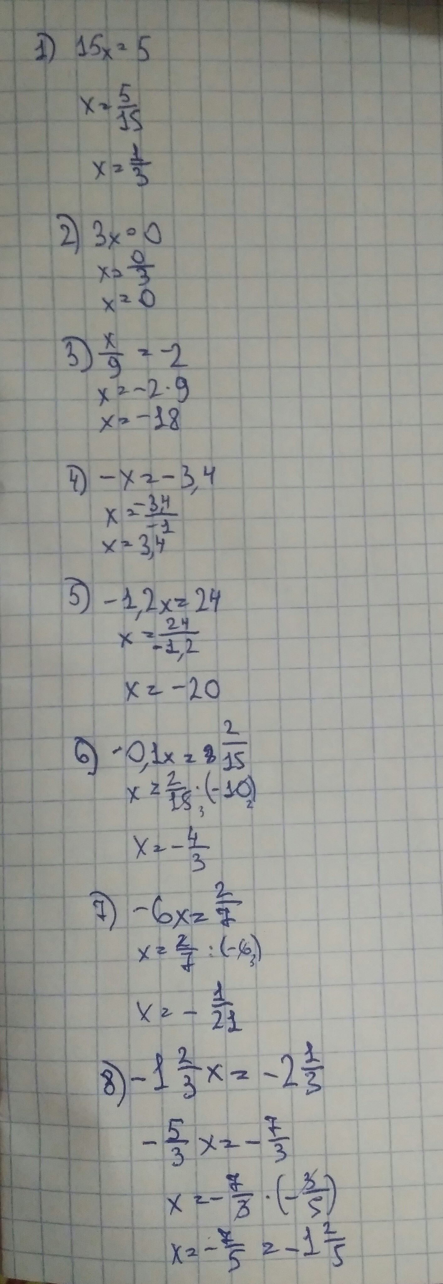 8)-1 2/3x=-2 1/3 (минус одна целая две третьих x = минус две целых одна третья